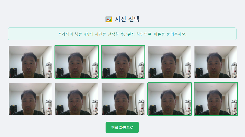 슬롯의 수만큼 사진을 선택하고 편집화면으로 이동합니다.