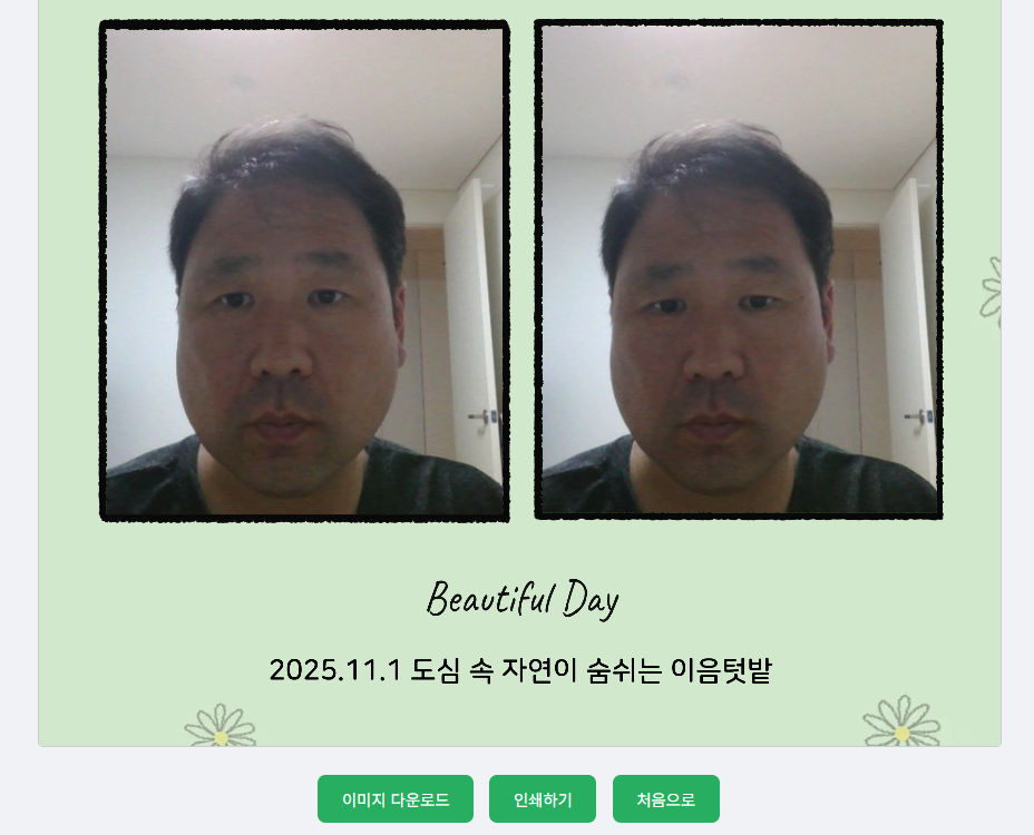 이미지 다운로드 버튼을 누르면 합성된 이미지가 내려받아집니다.