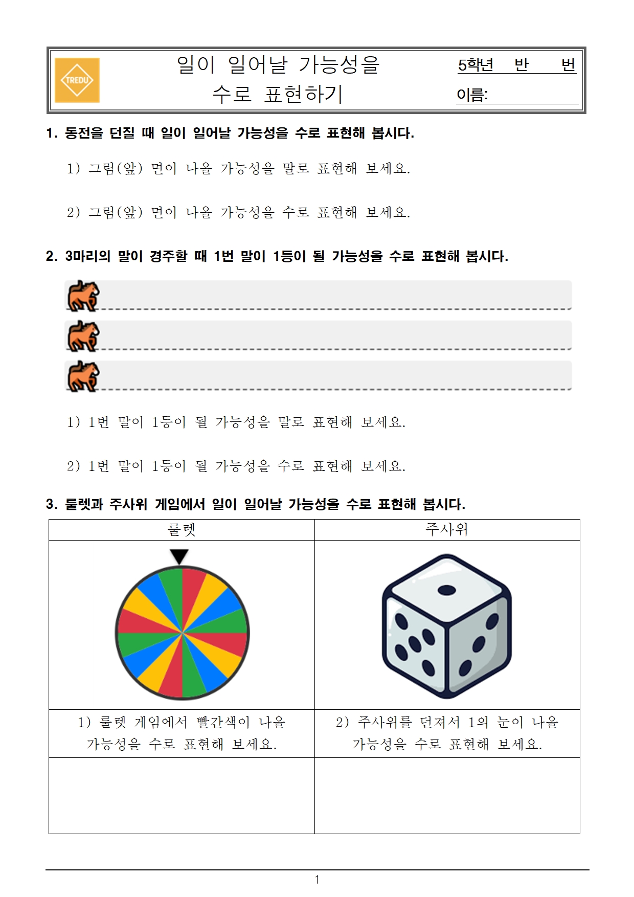 5학년 학생들이 일이 일어날 가능성을 수로 표현해보고 확률에 따라 자신의 운을 걸어 보는 게임을 만들어 보았습니다. 게임은 게임일 뿐~~ 도박 처럼 하면 안됩니다.