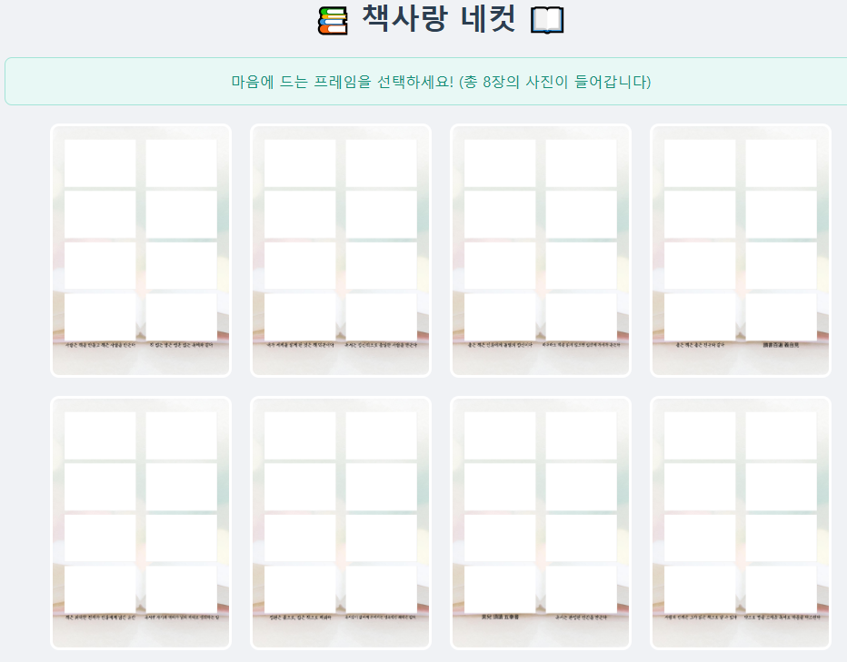 그래서 독서 컨셉의 네컷 프레임을 만들었습니다.